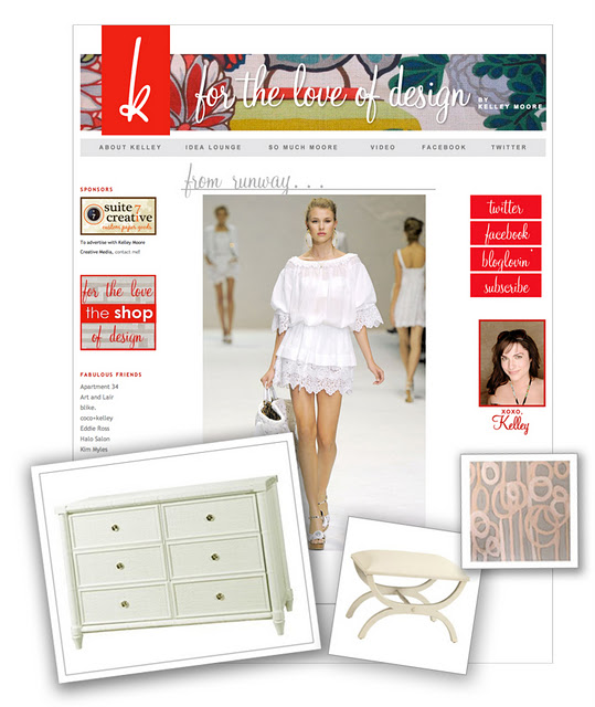 We were happy to see one of our pieces, the Fairfax 6 Drawer Rattan & Oak Chest from Bungalow 5 to be included in the From Runway to Room to Tabletop series in Kelley Moore’s terrific blog, for the love of design.