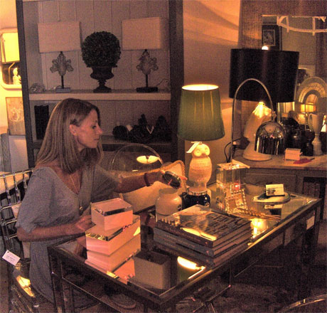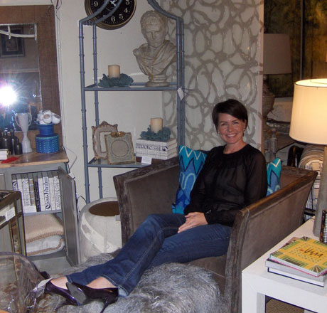 Sarah Kodadek gets comfortable on the new Tibetan Lamb Stool and Empress Club Chair.